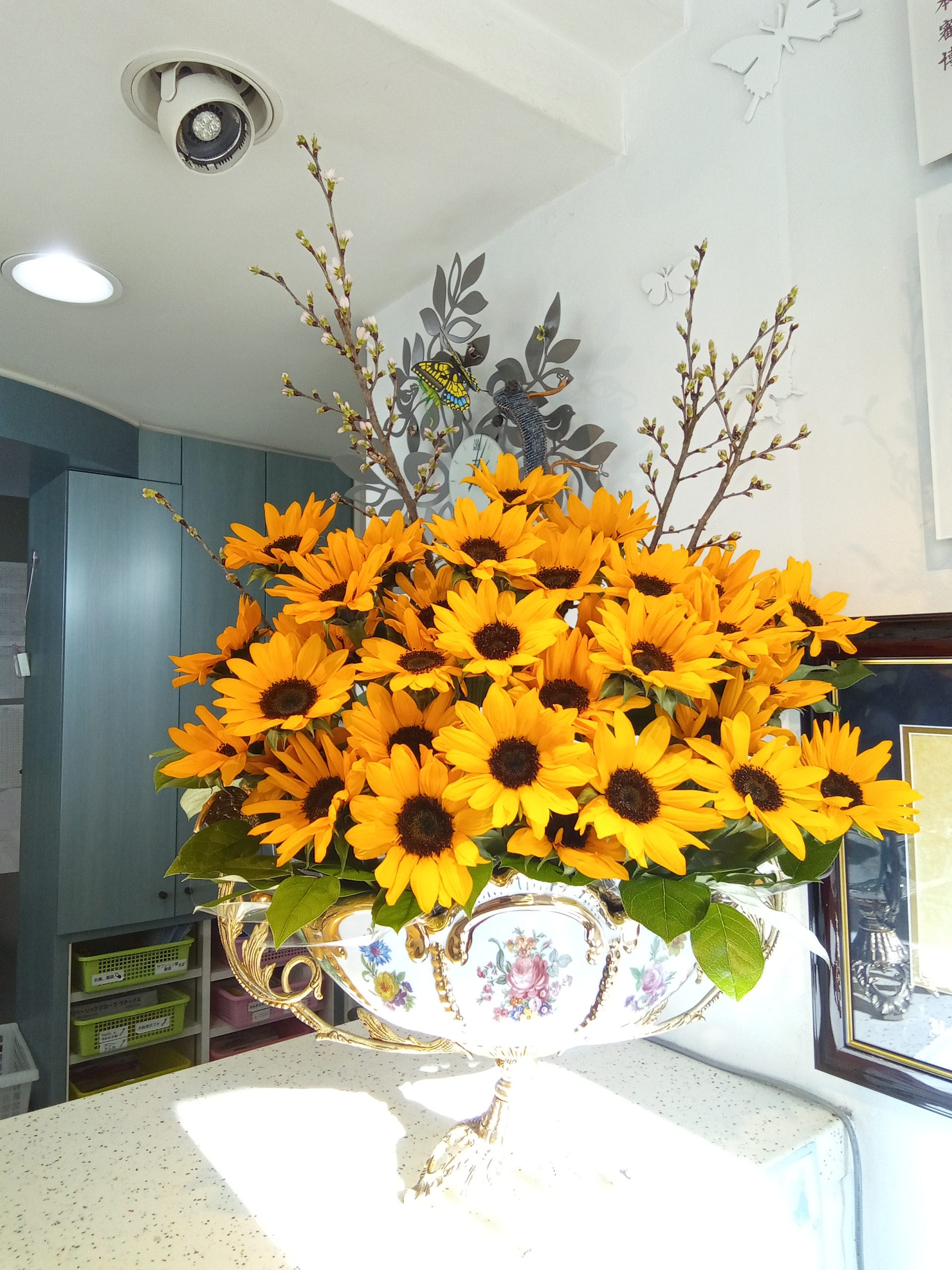 待合室→チューリップ、カーネーション、ドラセナ(コンパクタ)、ハシバミ(枝)