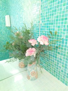 トイレ→カーネーション、ユーカリ、コニファー(ブルーアイス)
