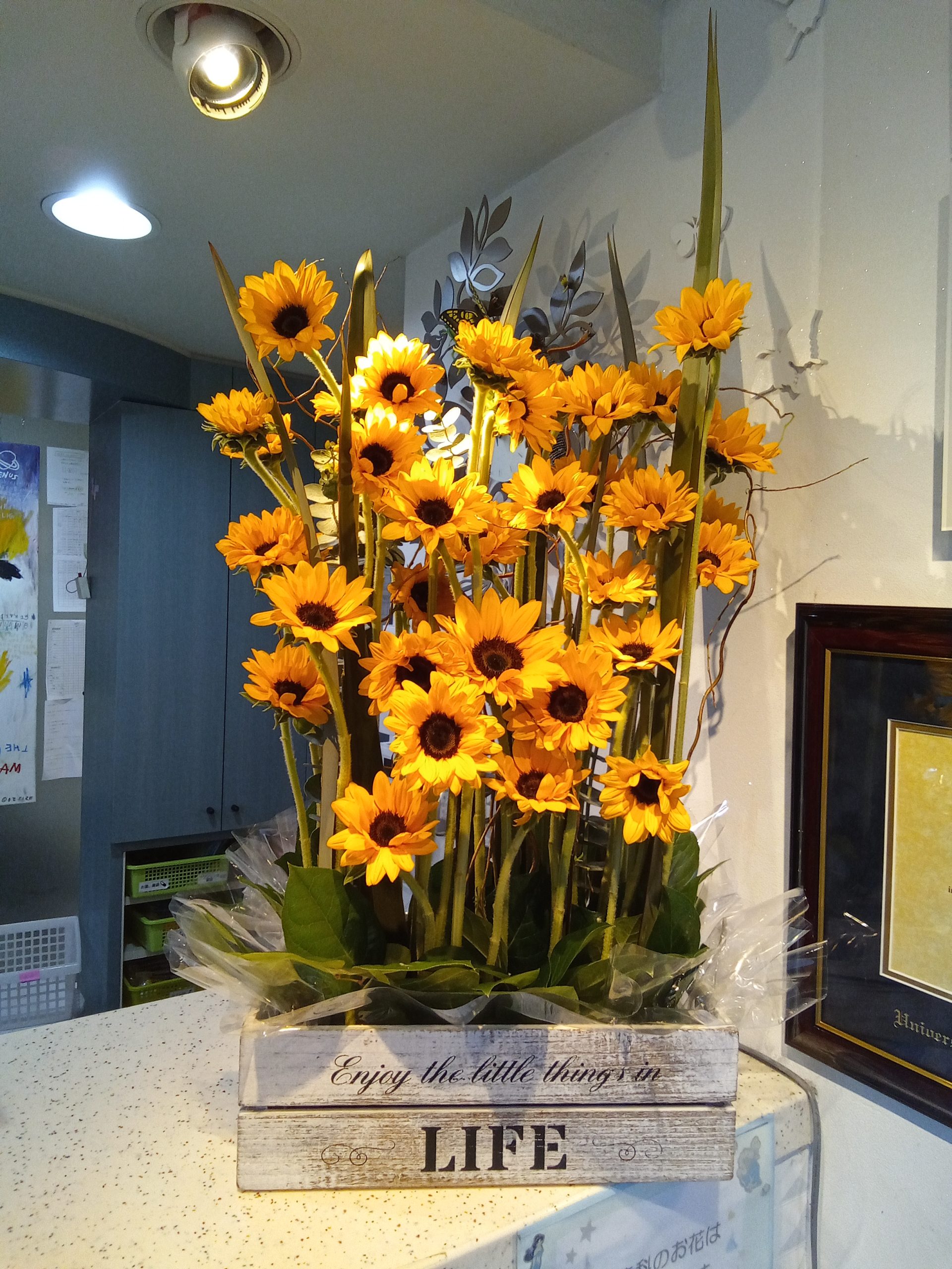 受付→千葉県プロカットプラム50本 待合室→エキナセア、カーネーション、フェリカ、ドラセナ トイレ→モンステラ、アンスリウム、アマランサス、ビバーナム、ソケイ 以上、今週のお花でした💐